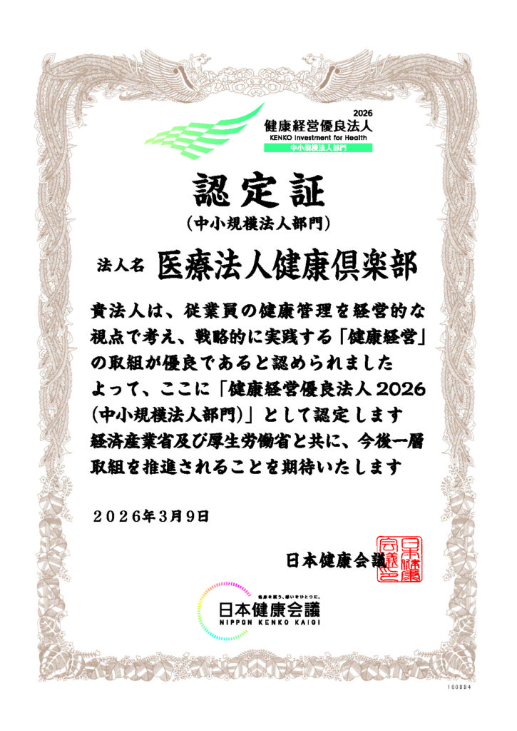 平素より健康倶楽部 健診クリニックをご利用いただき誠にありがとうございます。